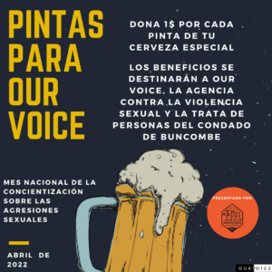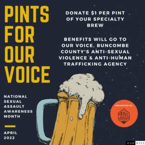 Are you an alcohol-serving establishment that would like to bring awareness to sexual violence AND raise money to support Our VOICE?? If you answered “yes!” click here to read more about Pints for Our VOICE and sign up!