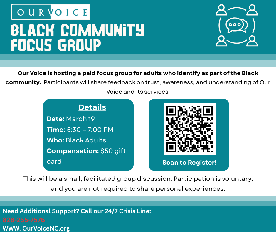 Our Voice invites adults who identify as part of the Black community to participate in a paid community focus group. This gathering is intended to provide a space for community members to share perspectives, feedback, and insights regarding awareness of, trust in, and understanding of Our Voice and the services we provide. The purpose of […]
